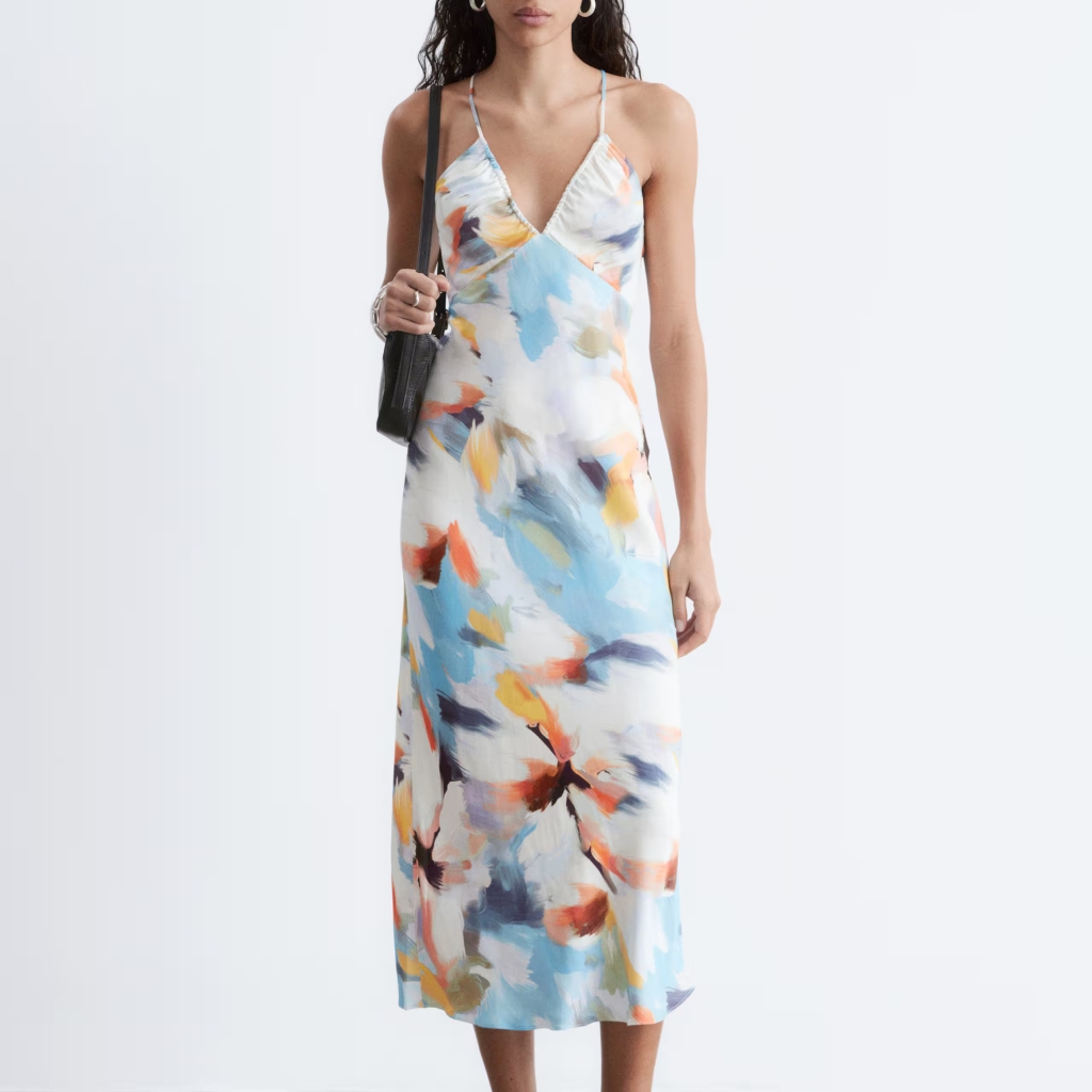 Women’s Beige Graphic Stripe Satin Slip Midi Dress V-Neck $110.95 – $121.95Price range: $110.95 through $121.95