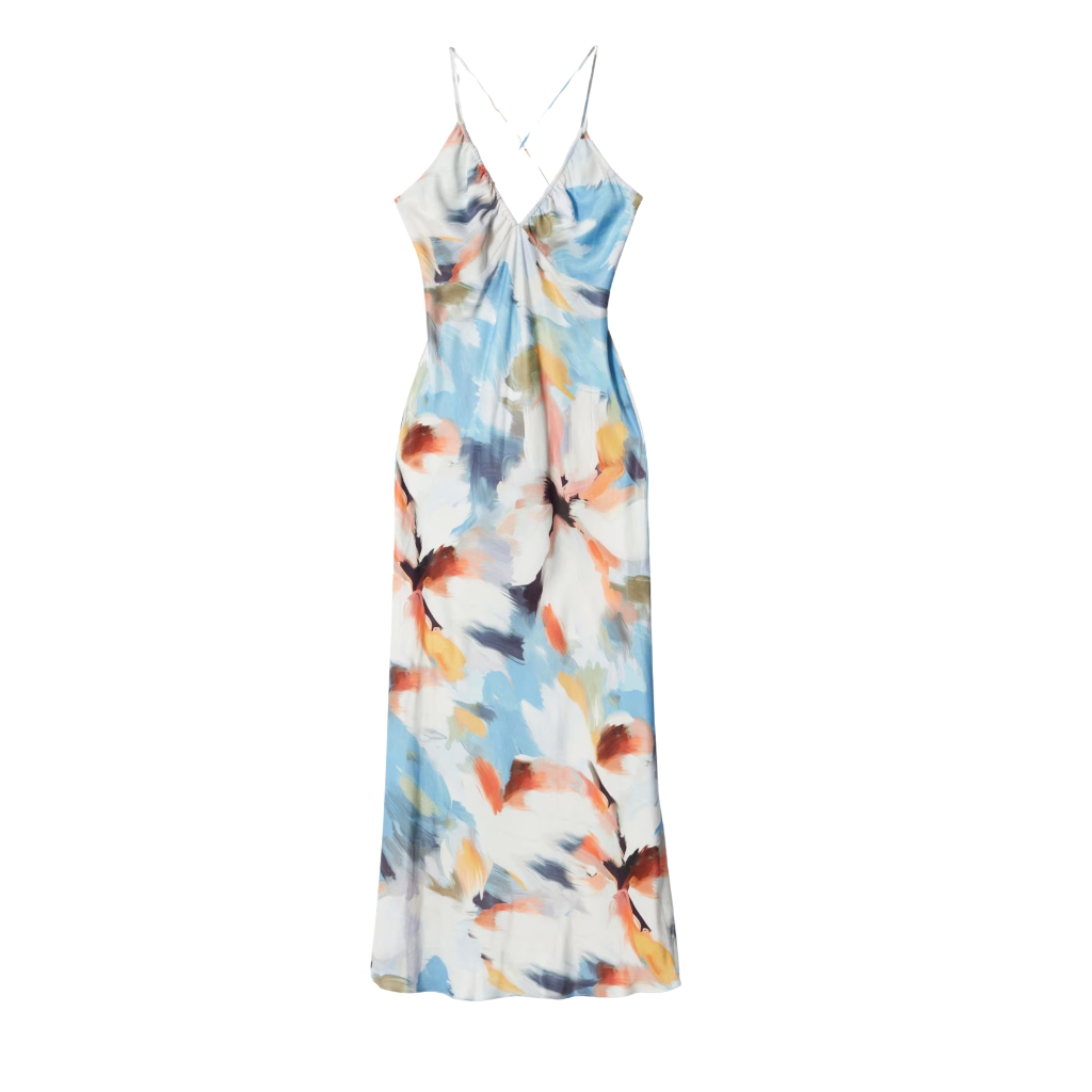Be the first to review “Women’s Blue Pattern Satin Slip Midi Dress V-Neck Strappy Backless” Cancel reply