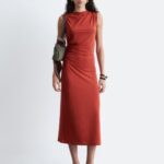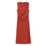 Be the first to review “Women’s Dark Orange Jersey Midi Dress Sleeveless Boat Neck Draped Fit” Cancel reply